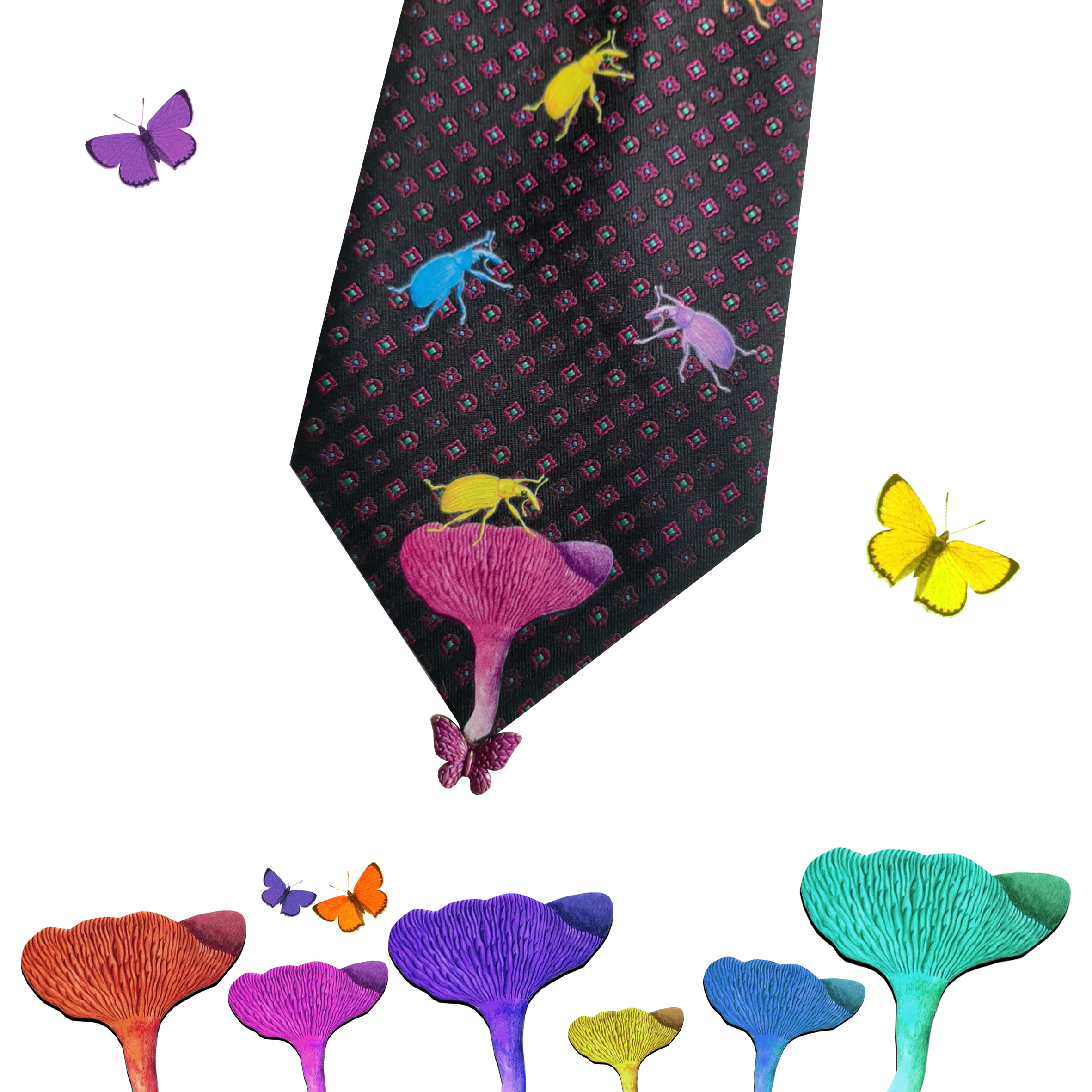 Tie with bugs and a butterfly