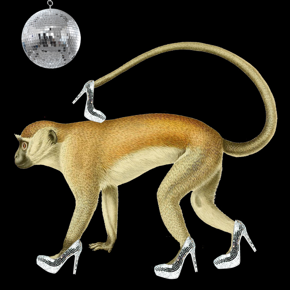 Kolaż pochodzi z serii „Co robią małpiszony?”